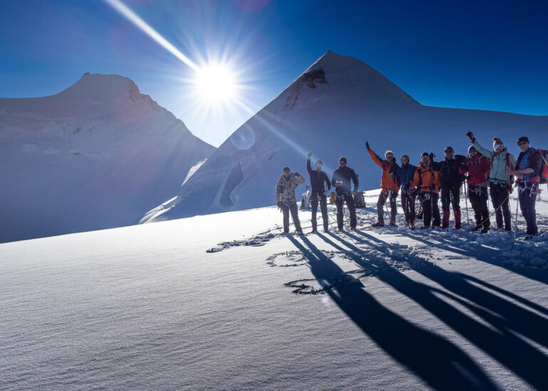 Zusammen mit Furtenbach Adventures ging es für 5 Tag in das Monte Rosa Massiv für ein Expedition Training. Zum ersten Mal ging es für mich auf einige Gipfel über 4000 Meter inklusive einer Nacht auf der höchsten Hütte Europas – der Regina Magherita Hütte auf der Signalkuppe ( 4554 Meter).