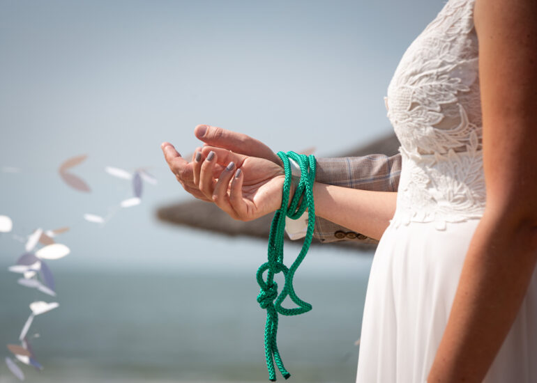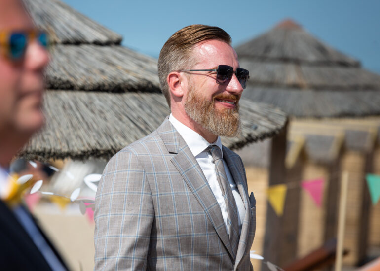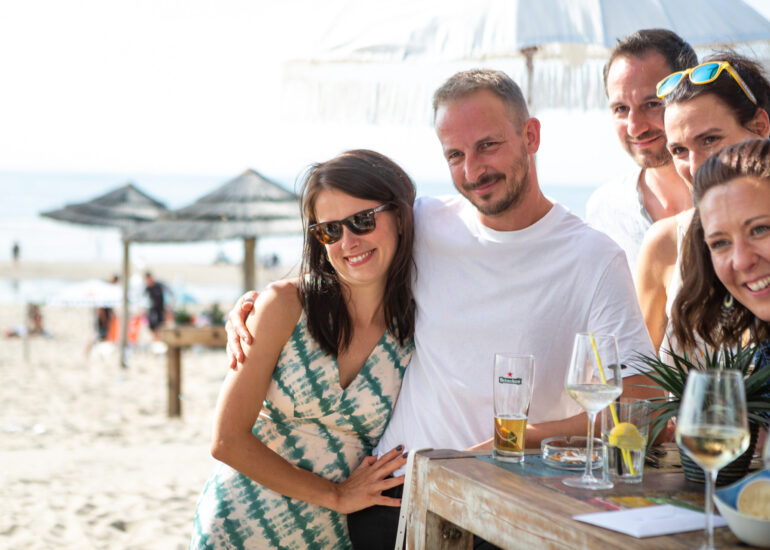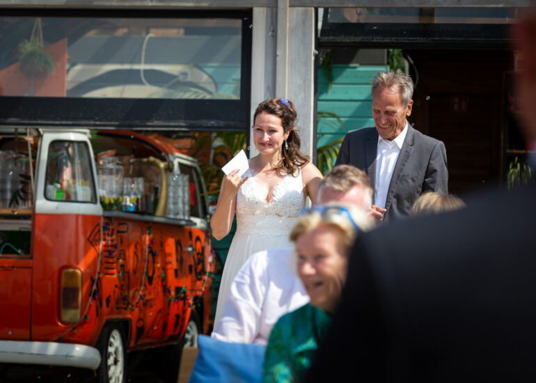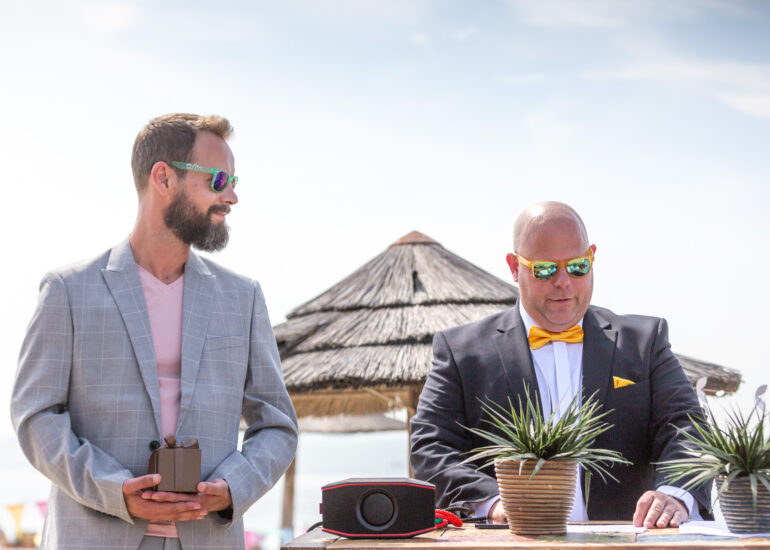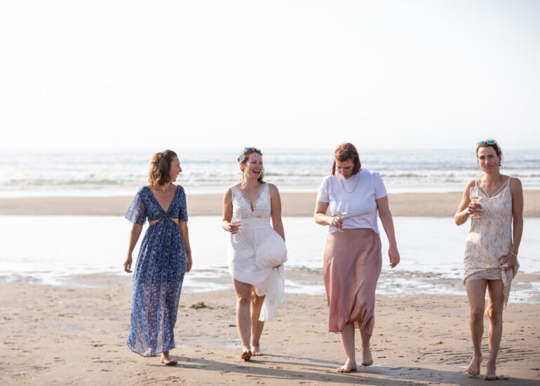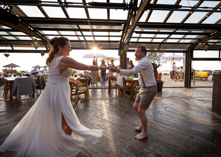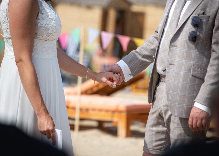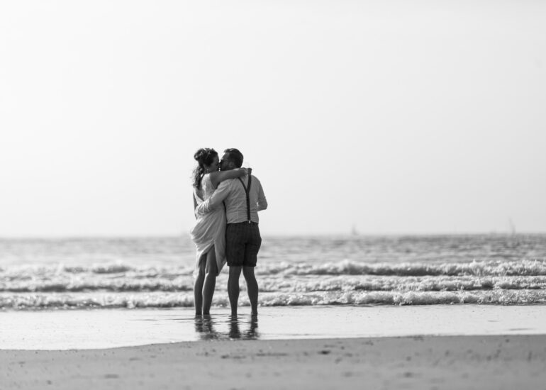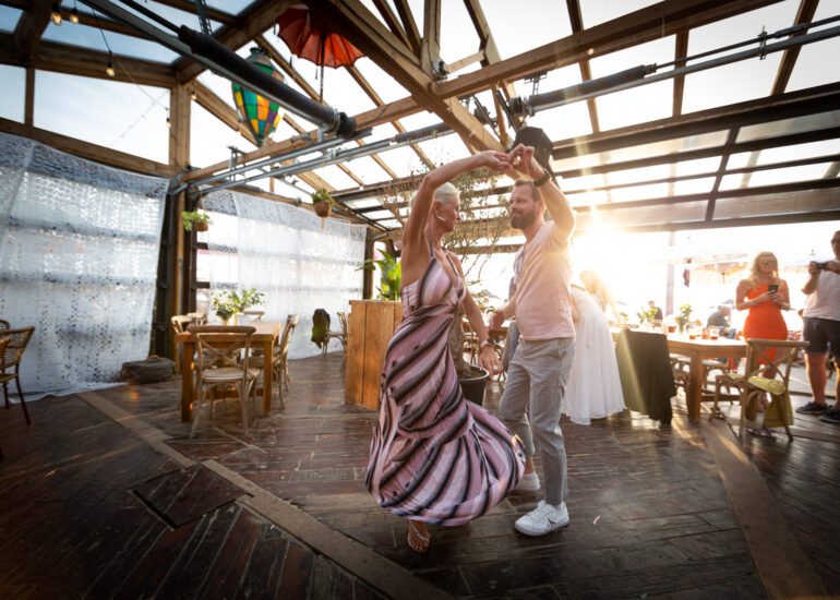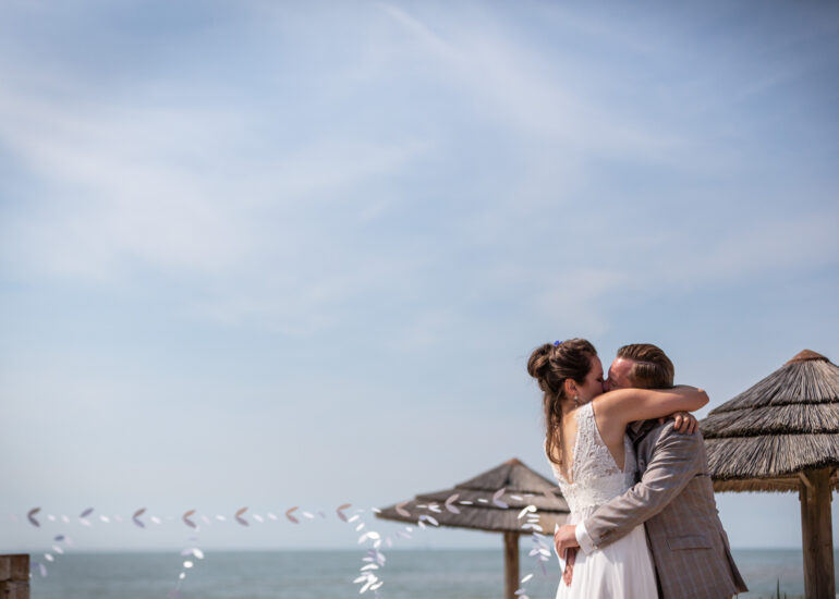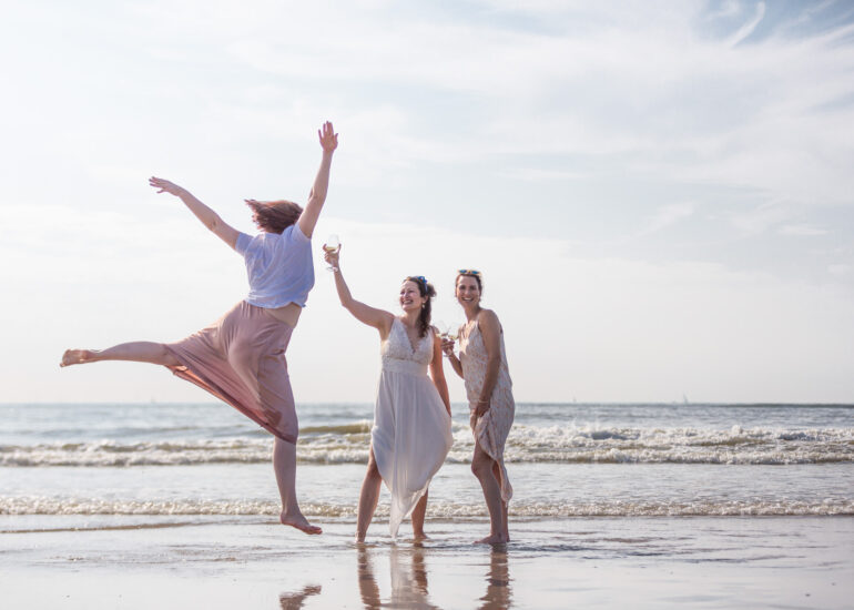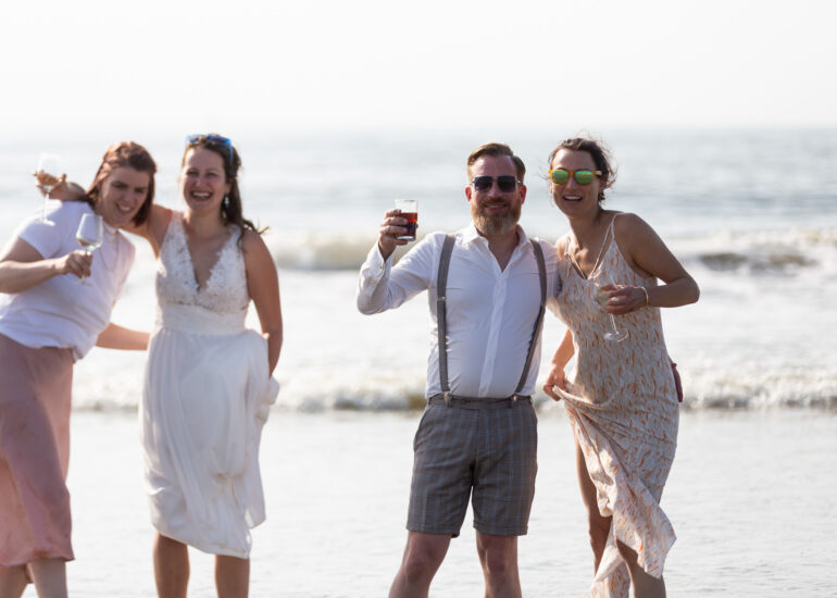 Am weißen Sandstrand vor der Bar Paal14 in Katwijk, Niederlande, habe ich am Samstag, den 23. Juli 2022, dieses großartige Paar fotografiert, als sie sich das Ja-Wort vor Ihren engsten Freunden und der Familie gegeben haben. Ein wundervoller Sonnenuntergang krönte den Hochzeitstag der Beiden.